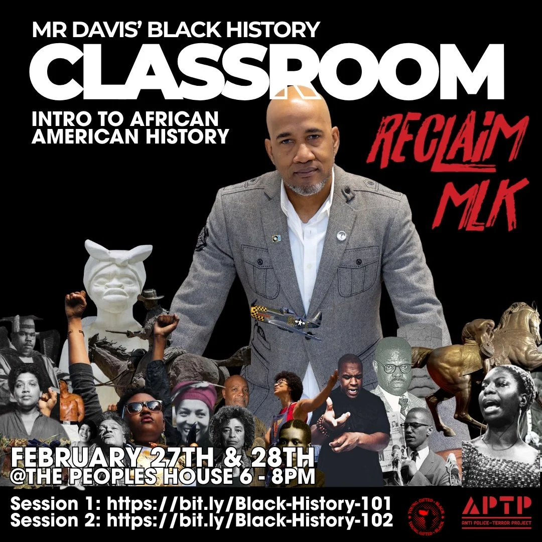 Mr Davis Classroom is a Black History series designed to combat internalized and interpersonal racism. Mr Hodari Davis has taught Black Studies and African American History for over 30 years. Each dynamic lecture aims to disrupt colonial mindsets and radically alter the way attendees see and understand Black History. Ultimately, these presentations are meant to express traditionally Black cosmologies and positionalities on the narratives that define the lives of Black people. Hodari has two Masters degrees and is currently a PhD candidate in the School of Education at UC Davis. He is a professional teacher with a passion for Black History and Black people. Come through and learn Black HIstory with Mr. Davis